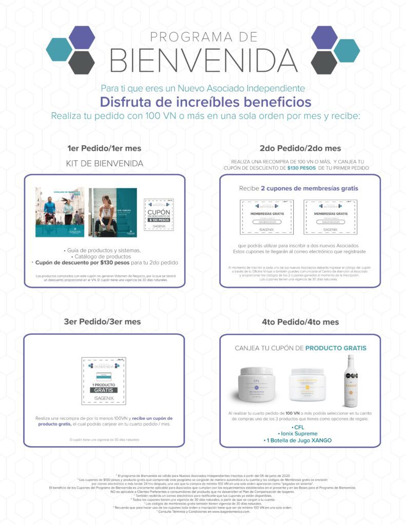 - No aplica para Clientes Preferentes ni para consumidores del producto que no desarrollen el Plan de Compensación de Isagenix.