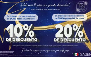 ¡Celebramos 15, con grandes con descuentos! 10% de descuento en órdenes con monto mínimo de $4,100 pesos (IVA incluido) 20% de descuento en órdenes con monto mínimo de $5,100 pesos (IVA incluido) Vigencia del 11 al 17 [...]